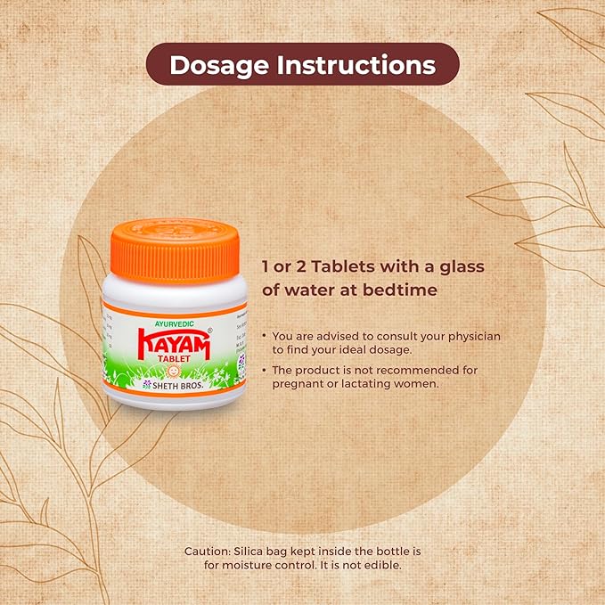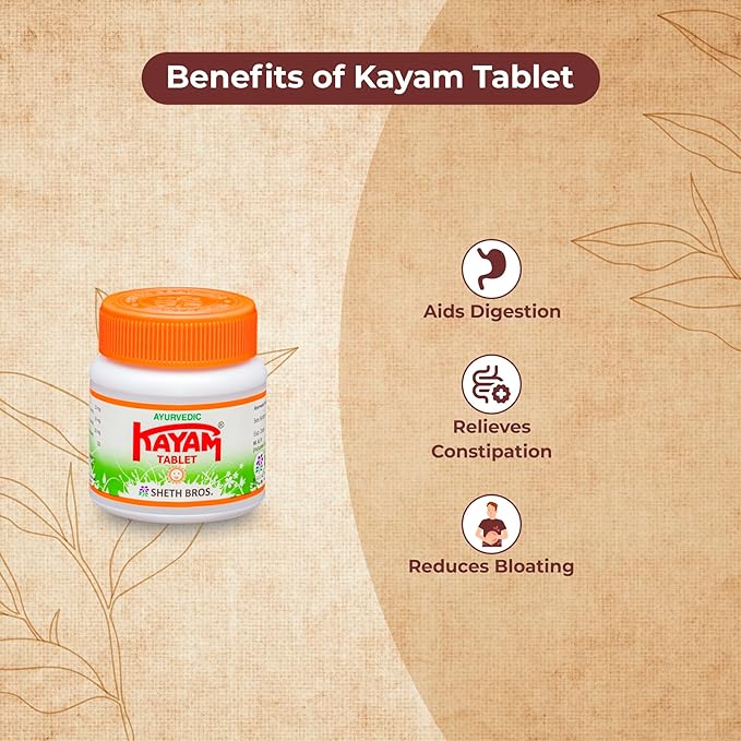Kayam Tablet is a trusted Ayurvedic digestive remedy designed to provide gentle, effective relief from constipation while supporting overall gut health. Made from time-tested herbal ingredients, it helps regulate bowel movements naturally without causing harsh side effects, making it suitable for regular digestive care.